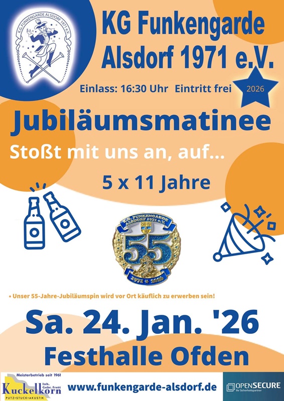 | 14.00 Uhr | Kinderkarnevalssitzung | KG Funkengarde | Festhalle Ofden, Alfred-Brehm-Str. | ||